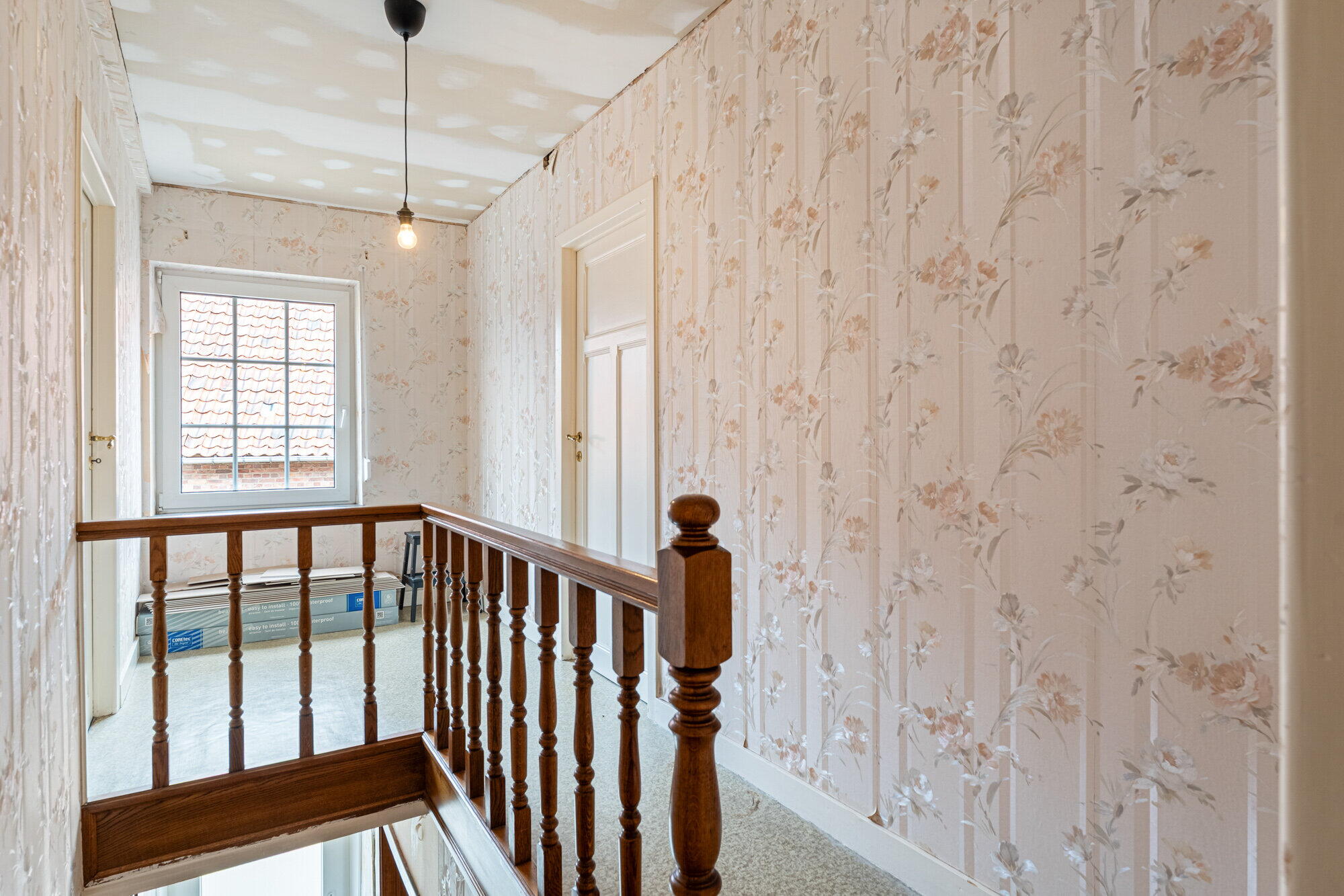 - Houten trap in de tussenhal geeft toegang tot het 1ste verdiep.