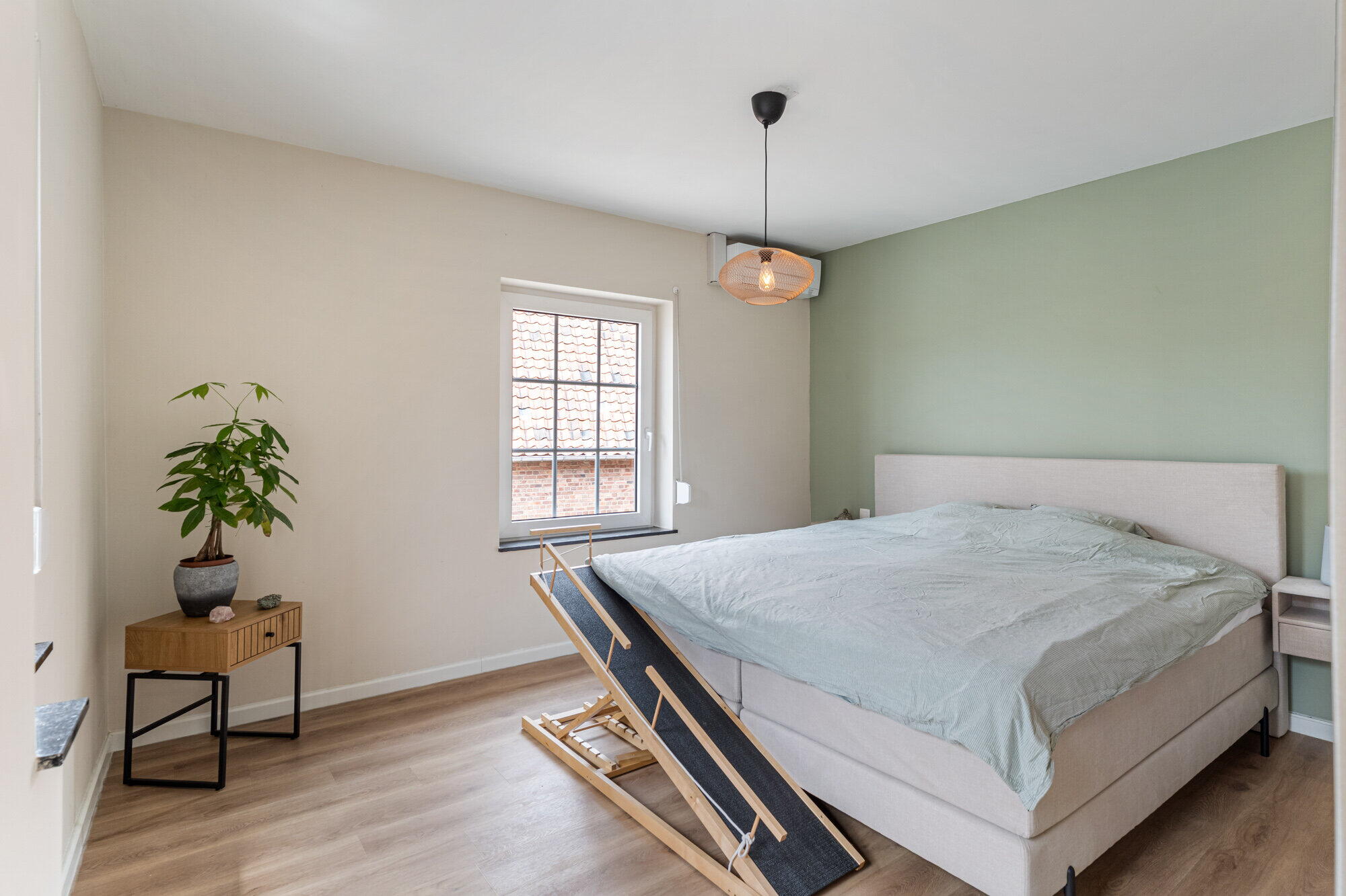 - Slaapkamer 4 bevindt zich aan de achterzijde en is uitgerust met airco, rolluik en vloerzeil;