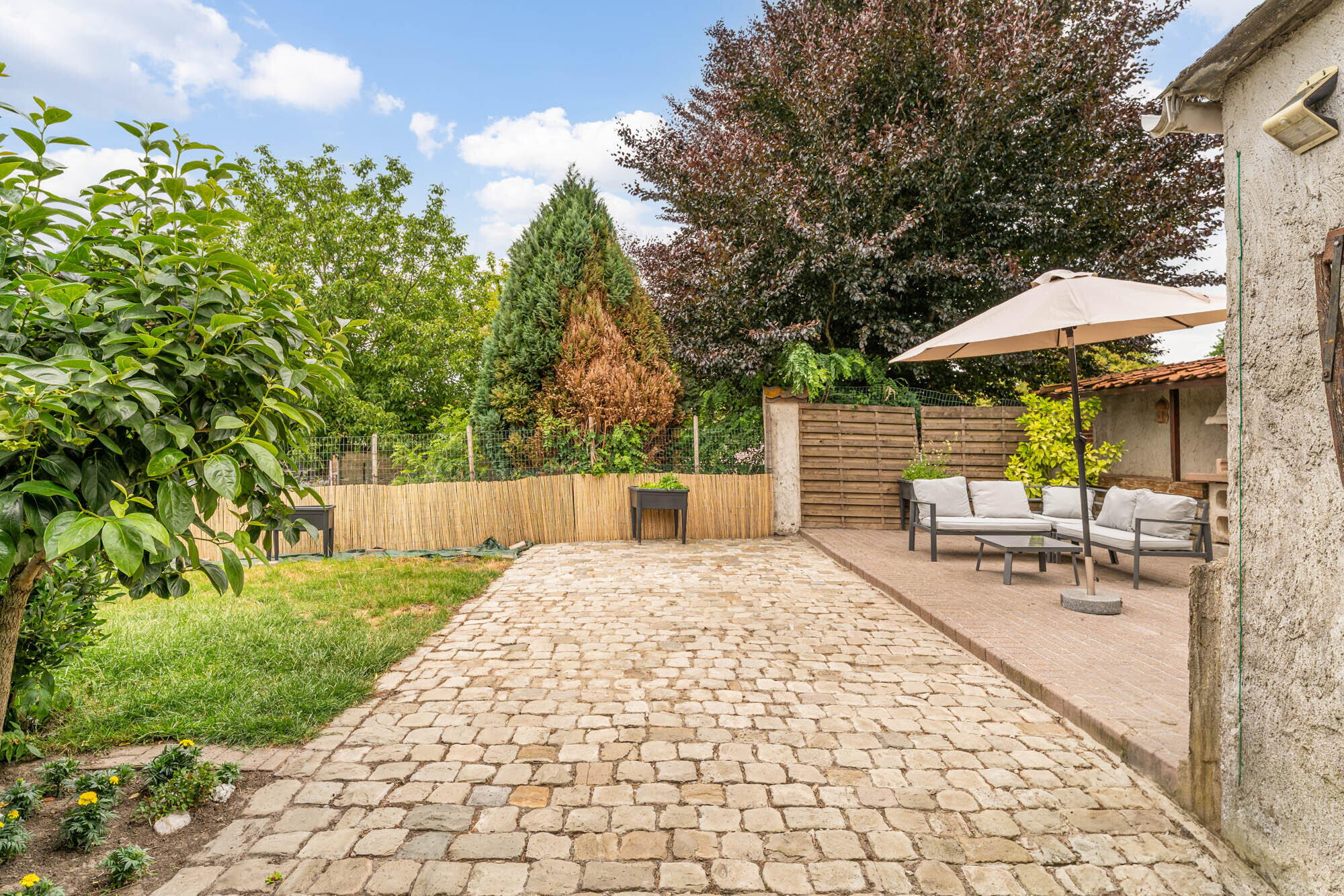 - Gedeeltelijk verhard met een stukje gras;