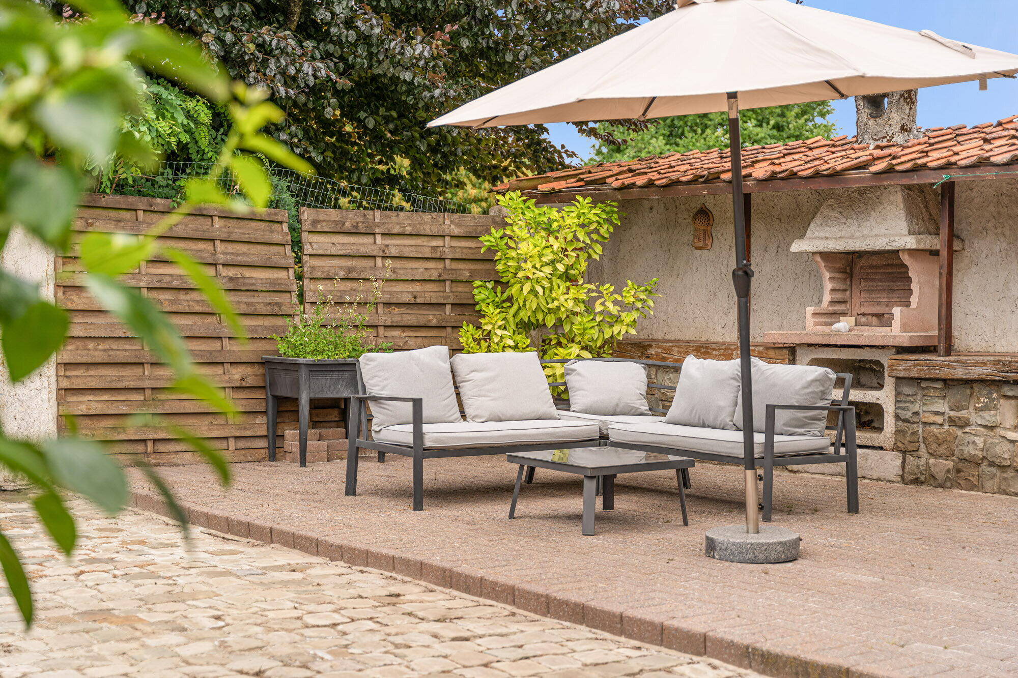 - Terras met hout-BBQ.